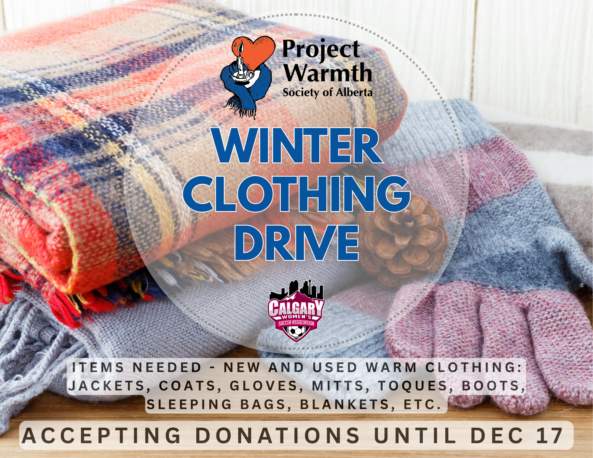 We will be collecting new and used warm clothing and winter essentials from now until December 17, and will deliver one combined donation on behalf of our membership.