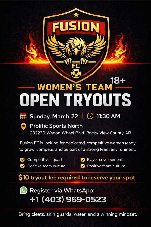 | OUTDOOR | Chaos | Chaos is looking for experienced forwards to join our outdoor 8v8 women’s soccer team. We’re a supportive, competitive group that believes in teamwork, development, and having fun while winning. We will be in Div 4. If you’re interested in joining us, email Crystalden3@gmail.com or text 587-227-2971 for more information. | 02/23/2026 |